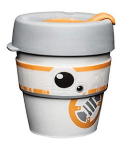 This travel cup, made by KeepCup, comes in LOTs of different colors. Most are about $18.00, but this special droid runs a bit more expensive. But it’ll be worth the extra bots when you start getting comments from commuters on the subway!